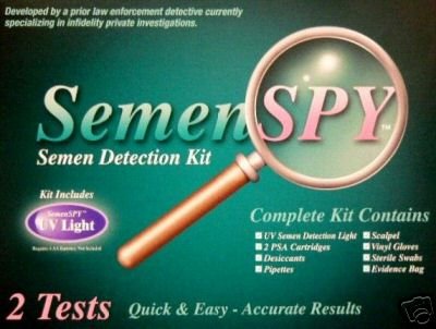 Confirm suspicions of infidelity of a spouse or significant other, Determine if minor children are engaging in sexual intercourse. Collect evidence that may prove signs of sexual child molestation. Semen Detection Spy Kit uses an extremely accurate testing method called PSA (Prostate Specific Antigen). PSA is one of the major proteins found in seminal fluid and it can also be found in the absence of spermatozoa in the case of men whom have had a vasectomy. Scientists have been able to recover PSA from semen stains as old as 30 years! By using the enclosed Semen Detection Spy UV light you may find suspicious stains that you can test for semen. This is a similar tool used in many forensic investigations for the identification of bodily fluids found on a variety of articles, which may otherwise be invisible to the naked eye.